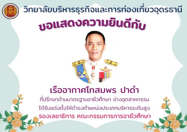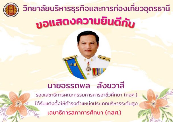 วิทยาลัยบริหารธุรกิจและการท่องเที่ยวอุดรธานี ขอแสดงความยินดีกับ วรรณวิสา อุปรีย์ นักเรียน ระดับชั้น ปวช.2 แผนกวิชาการบัญชี ได้รับรางวัลรองชนะเลิศอันดับสอง